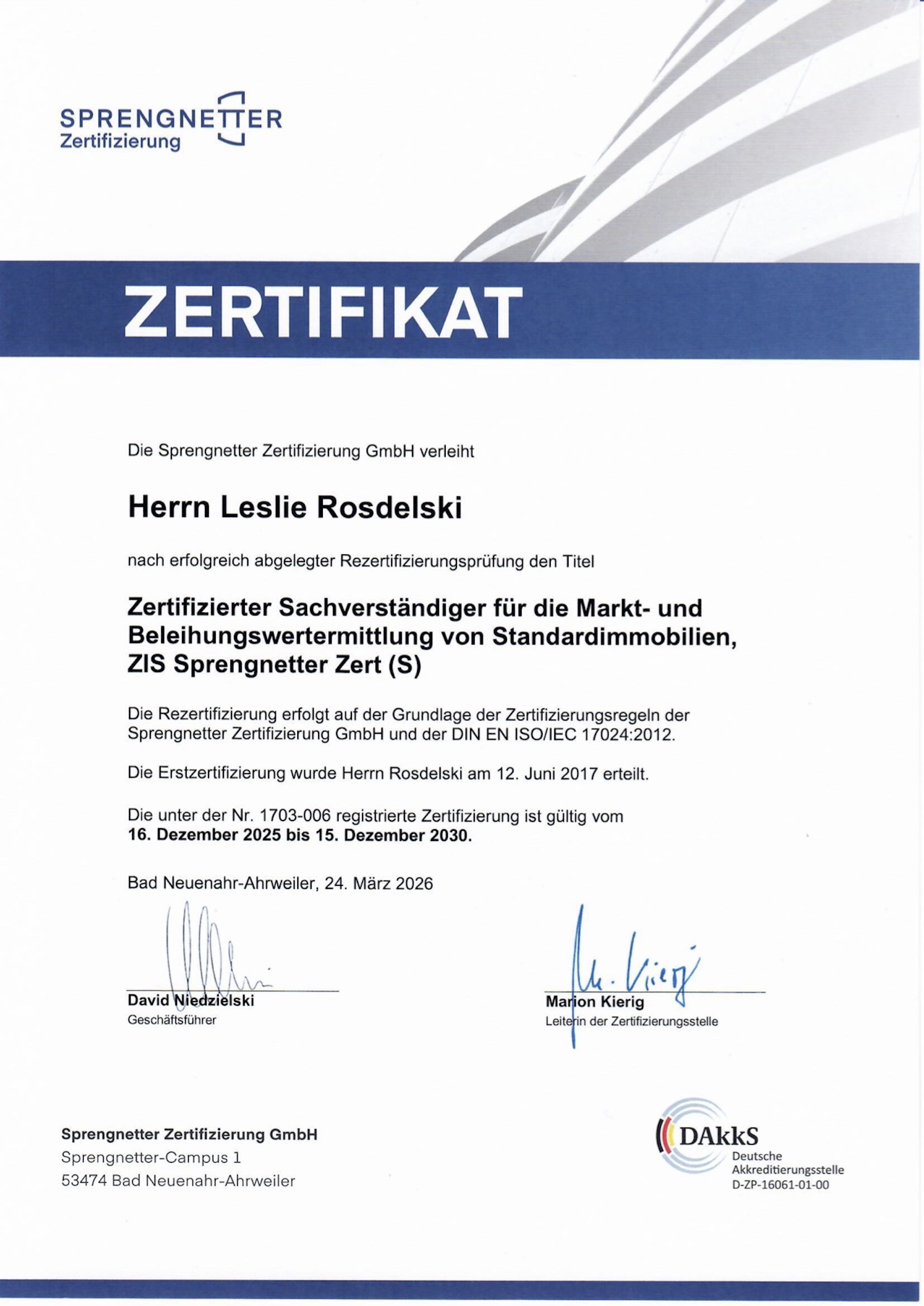 - Gesicherte örtliche Marktkompetenz (Mitglied des Sprengnetter Expertengremiums für die Region Thüringen Nord)